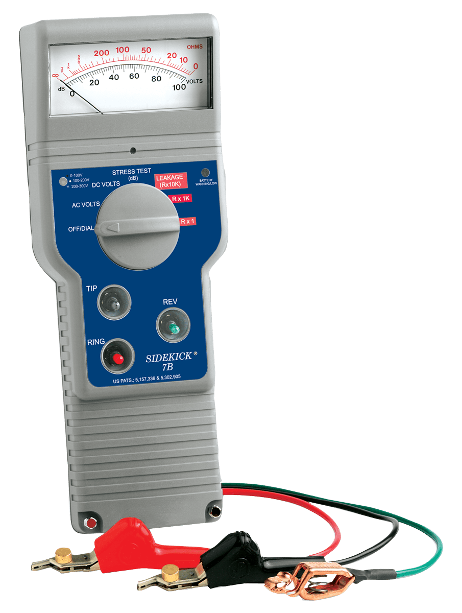 The Sidekick family of telecom testers is the perfect instrument for troubleshooting the faults responsible for over 75% of all customer service interruptions. The Sidekick is the only troubleshooting tool that features the Stress Test to measure audible noise on a pair when “stressed” with 90dBrnC longitudinal excitation – key to identifying imbalances and series resistance opens. The Leakage Test also detects intermittent resistance faults undetectable with a typical VOM tester.